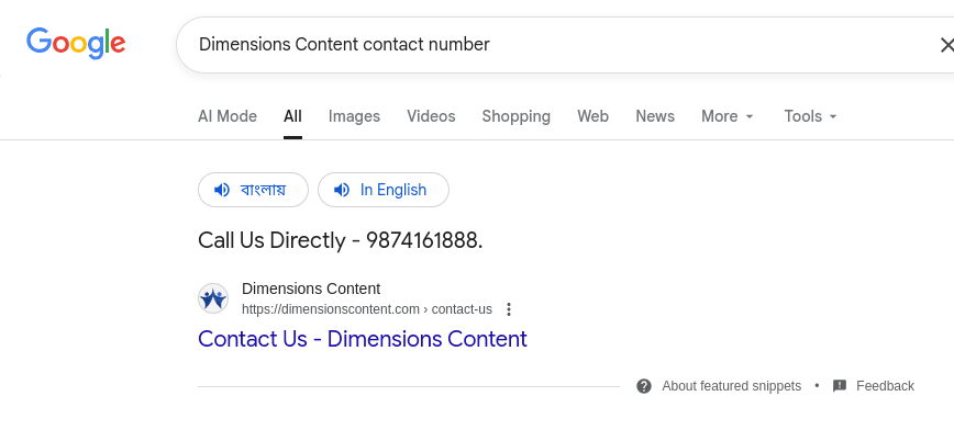 For example, if you search for “Dimensions Content contact number” on Google, you’ll see this: